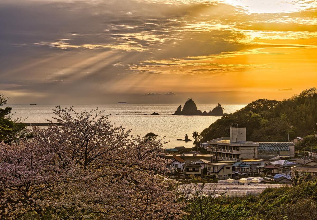 (入選)桜越しに望む田子島