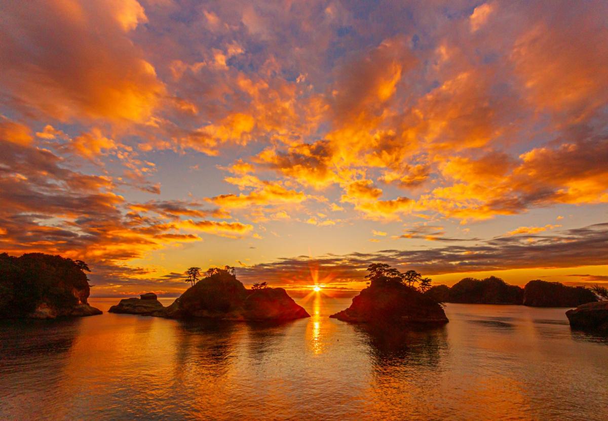 (佳作)燃 える空 とゴジラ岩 のシルエット